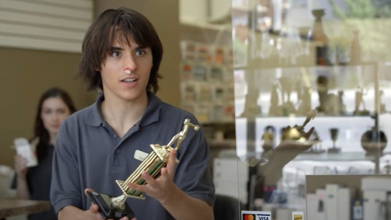 A lowly young trophy shop employee who has never won anything other than a participation ribbon, is in love with his manager and stages a robbery to try to prove to her that he is in fact "a winner."