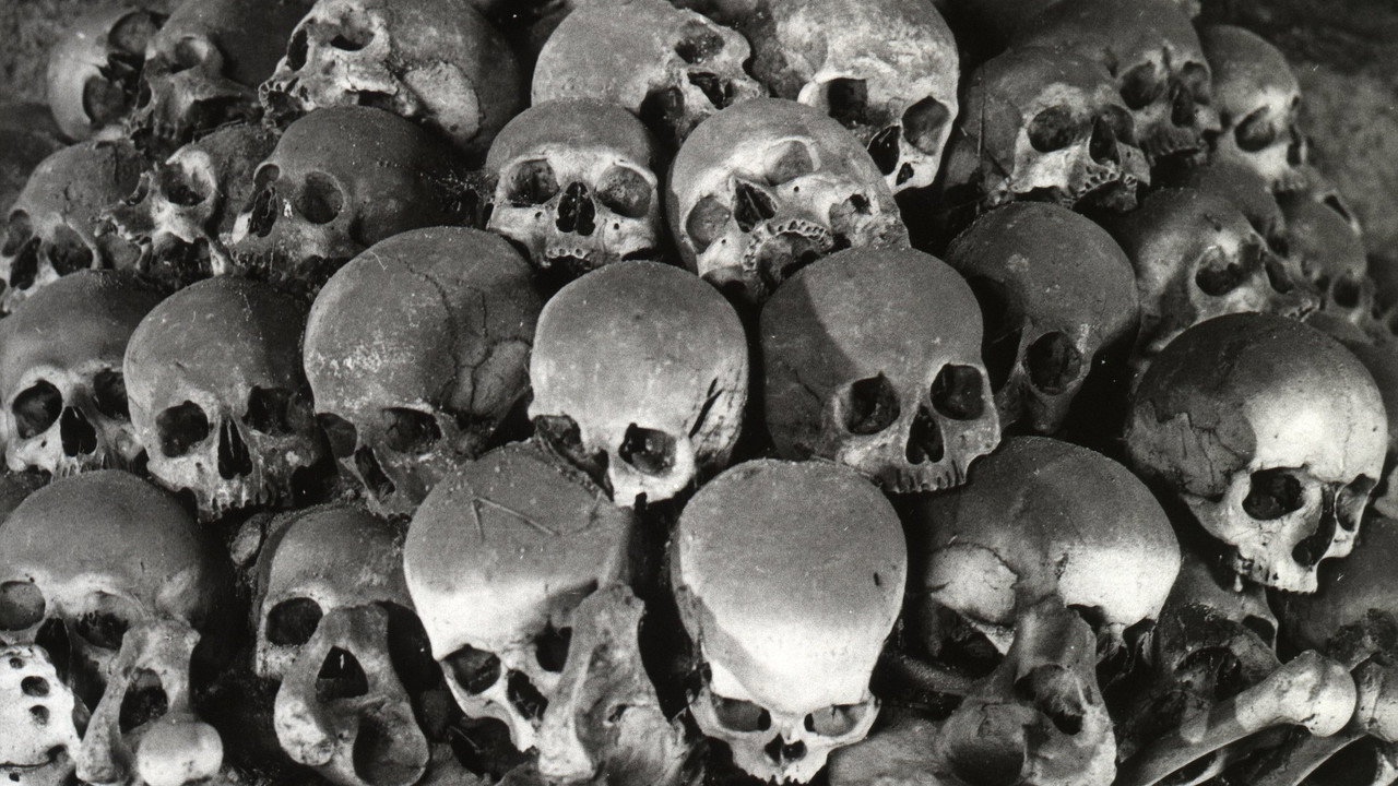 A non-narrative voyage round Sedlec Ossuary, which has been constructed from over 50,000 human skeletons (victims of the Black Death).