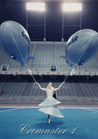 CREMASTER 1 (1995) is a musical revue performed on the blue Astroturf playing field of Bronco Stadium in Boise, Idaho - Barney's hometown. Two Goodyear Blimps float above the arena like the airships that often transmit live sporting events via television broadcast. Four air hostesses tend to each blimp. The only sound is soft ambient music, which suggests the hum of the engines.
