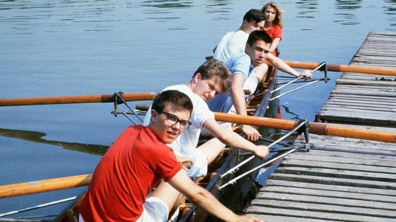 In 1985, four middle-aged Yugoslav emigres return to Belgrade for the funeral of Mariana, their beautiful compatriot. They called her Esther, for Esther Williams, she was the coxswain for their four-man rowing team, and they each loved her. They'd last seen her in 1953, when they rowed her across the Adriatic, pregnant, to join her exiled father in Italy. In flashbacks we learn the story of their youthful baptism into sex, smoking, rock and roll (Hey Ba-ba-re-bop), Hollywood and Swedish films, blue jeans on the black market, and their rivalry with Ristic, the Communist Party youth leader for whom they had instant antipathy.