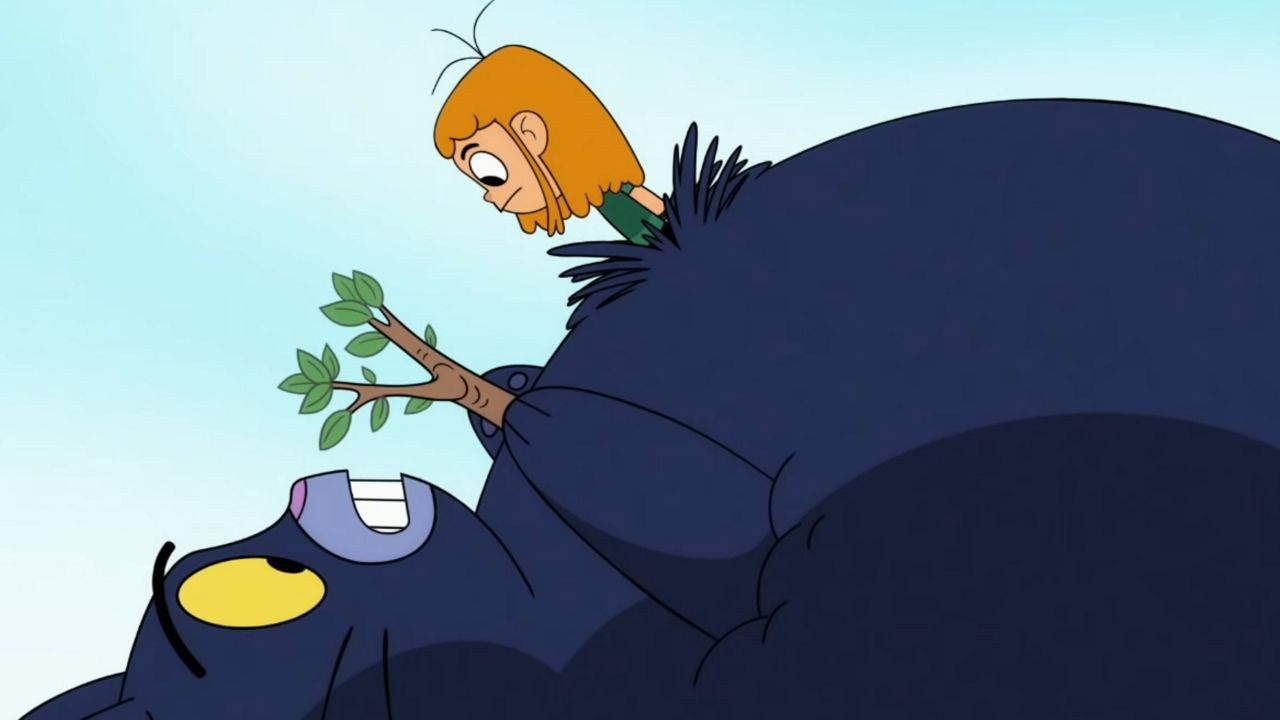 Hazel and her cowardly ten-foot-tall cat, Pancake, try to befriend a giant chicken causing chaos in their magical forest.