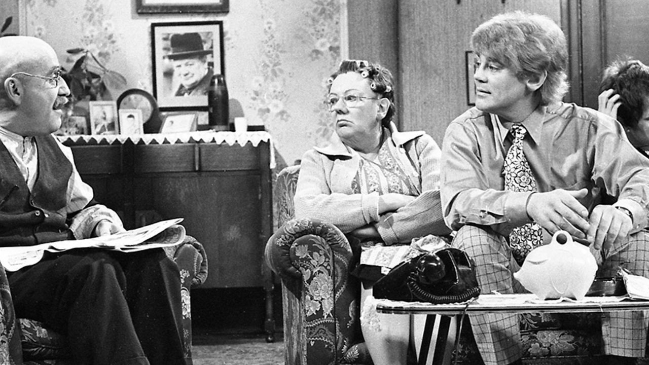 This English follows the East End working-class Garnett family, headed by patriarch Alf, a reactionary working-class man who wields racist and anti-Socialist views. His long-suffering wife Else manages to keep things in control... for the most part. Their progressive daughter Rita lives with them, as does her Irish husband Mike, who, with an array of liberal worldviews, often quarrels with his father-in-law. It inspired the American show "All In The Family" and several other international variations on the same theme.
