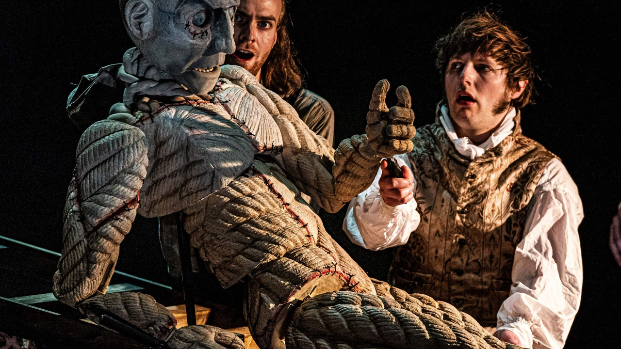Dr Frankenstein obsesses over his creation in Blackeyed Theatre’s adaptation of Mary Shelley’s masterpiece, in which The Creature is brought to life through puppetry. Captured live at Wilde Theatre, Bracknell, in 2022, this production features ensemble storytelling, multi-roling and live music and explores themes of revenge, prejudice and ambition.
