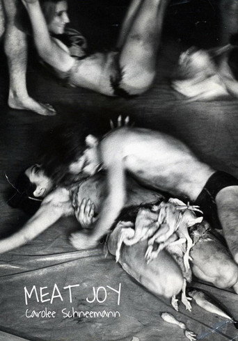 "Meat Joy is an erotic rite â excessive, indulgent, a celebration of flesh as material: raw fish, chicken, sausages, wet paint, transparent plastic, ropes, brushes, paper scrap. Its propulsion is towards the ecstatic â shifting and turning among tenderness, wildness, precision, abandon; qualities that could at any moment be sensual, comic, joyous, repellent. Physical equivalences are enacted as a psychic imagistic stream, in which the layered elements mesh and gain intensity by the energy complement of the audience. The original performances became notorious and introduced a vision of the 'sacred erotic.' This video was converted from original film footage of three 1964 performances of Meat Joy at its first staged performance at the Festival de la Libre Expression, Paris, Dennison Hall, London, and Judson Church, New York City."