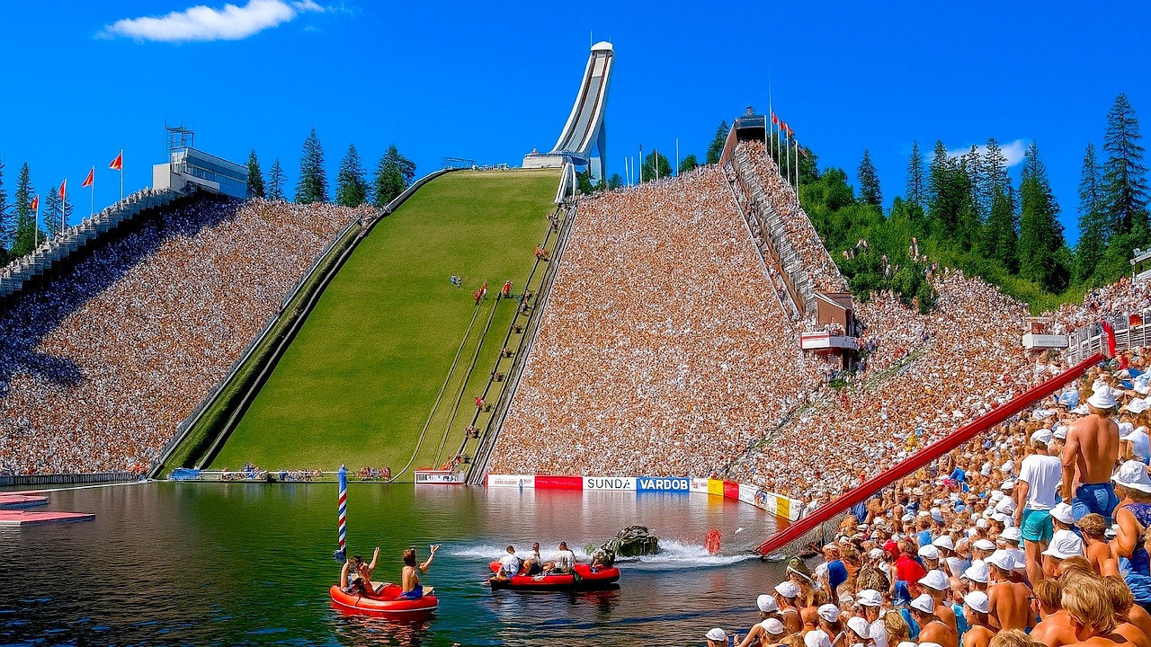 ÂŤTa sjansenÂť was a popular Norwegian TV show broadcast on NRK from 1983 to 2002. It was a light-hearted, annual summer event filmed outdoors at the Homenkollen ski jump in Oslo. The show featured contestants competing in two main types of humorous and often chaotic challenges: Homemade boats racing down a steep ramp into the water, and creative bicycles racing on floating docks. Participants often wore silly costumes and built wildly imaginative contraptions, making the spectacle part game show, part variety show, and part slapstick comedy. ÂŤTa sjansenÂť was known for its fun, festive atmosphere, and it became a beloved summer tradition in Norway. Though not officially competitive, winners were awarded prizes, and the emphasis was always on entertainment rather than serious sportsmanship.